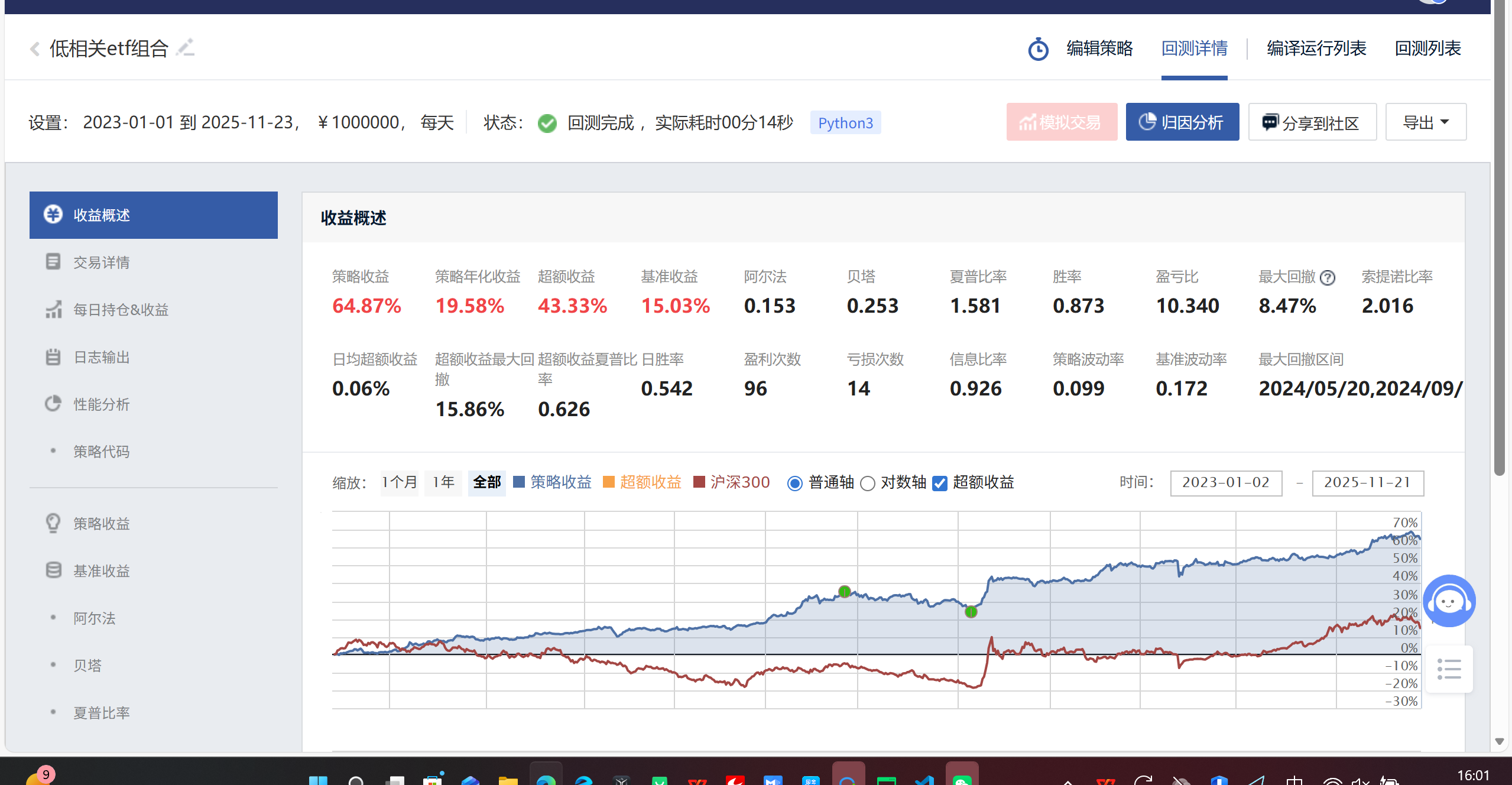 高性能回测平台,采用多线程与并行计算技术,能同时回测多个策略或全市场数据,提供从策略编写、回测验证到绩效分析的完整闭环
